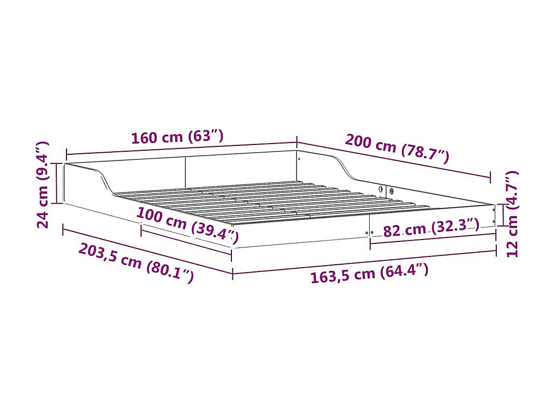 Cama extralarga sin colchón madera maciza 160x210 cm