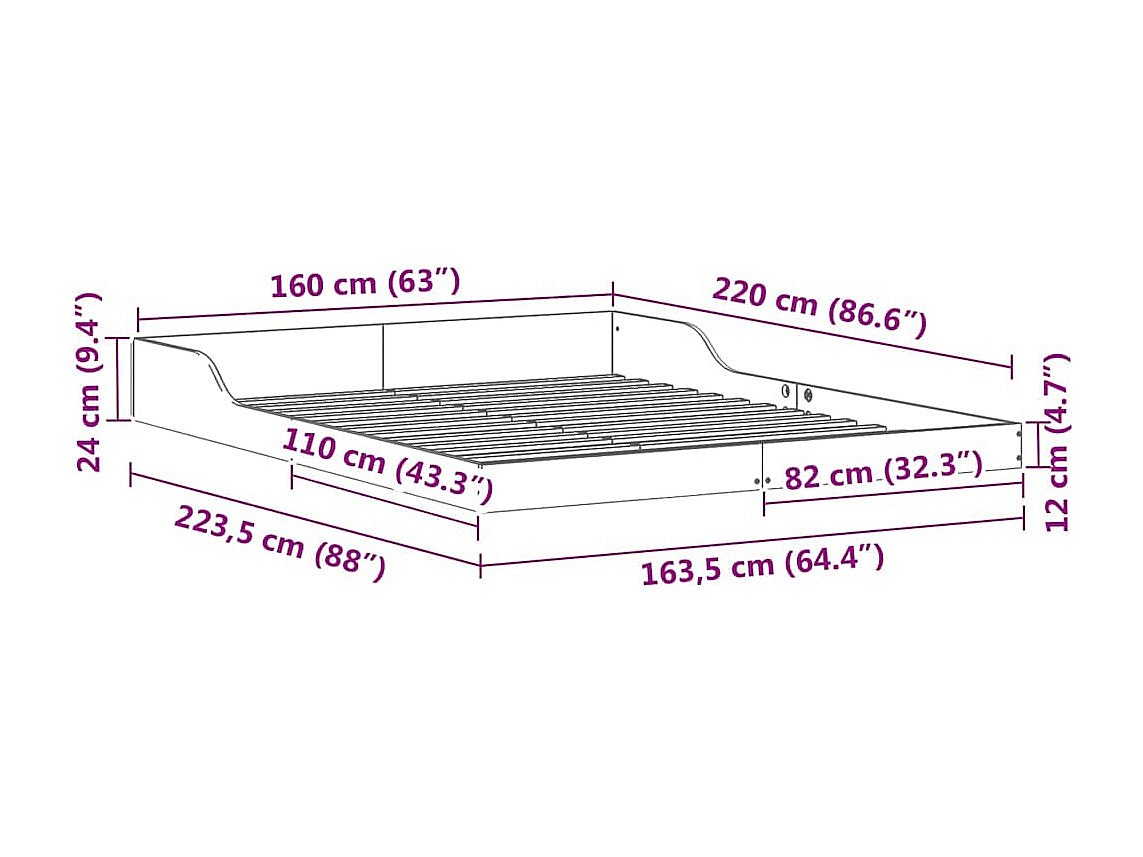 Cama extralarga sin colchón madera maciza 160x220 cm