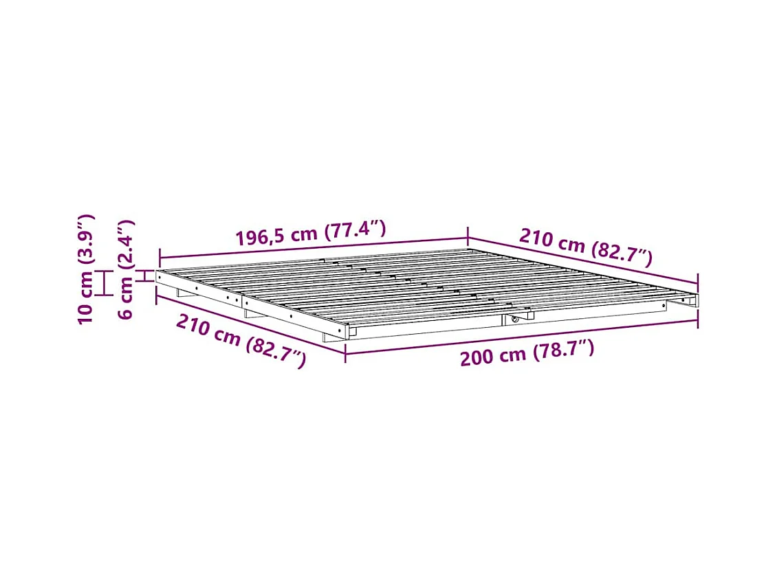 Cama extralarga sin colchón madera maciza de pino 200x210 cm