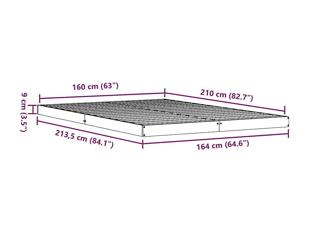 Cama extralarga sin colchón madera maciza 160x210 cm
