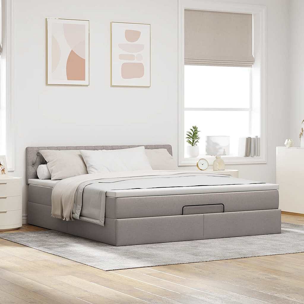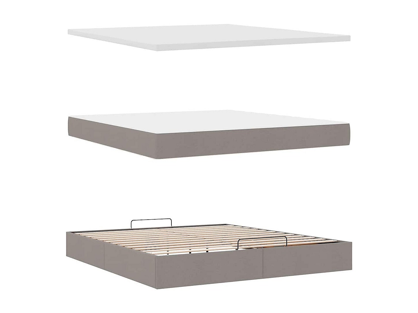 Estructura de cama otomana colchón tela gris pardo 160x200cm