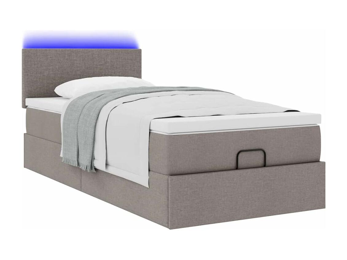 Cama box spring con colchón tela gris taupe 80x200 cm
