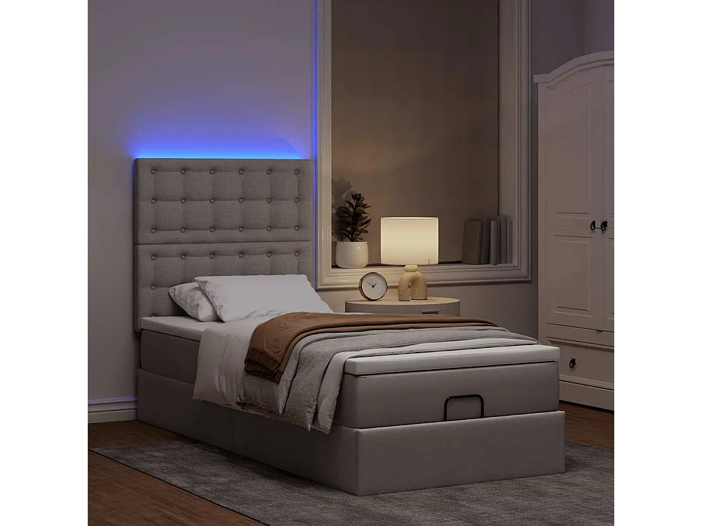 Estructura de cama otomana colchón tela gris pardo 90x200cm