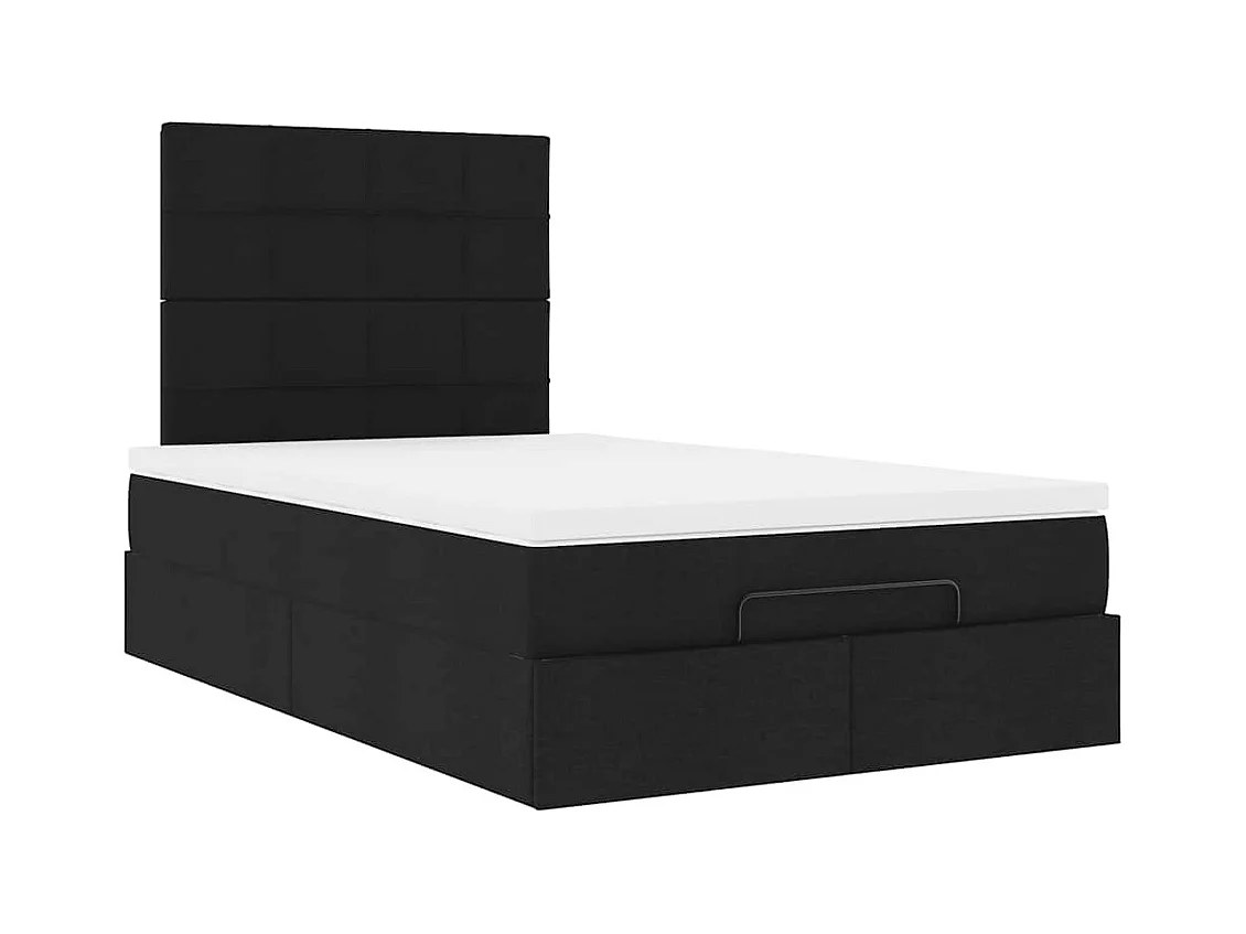 Cama otomana con colchón y luces LED tela negra 120x190 cm