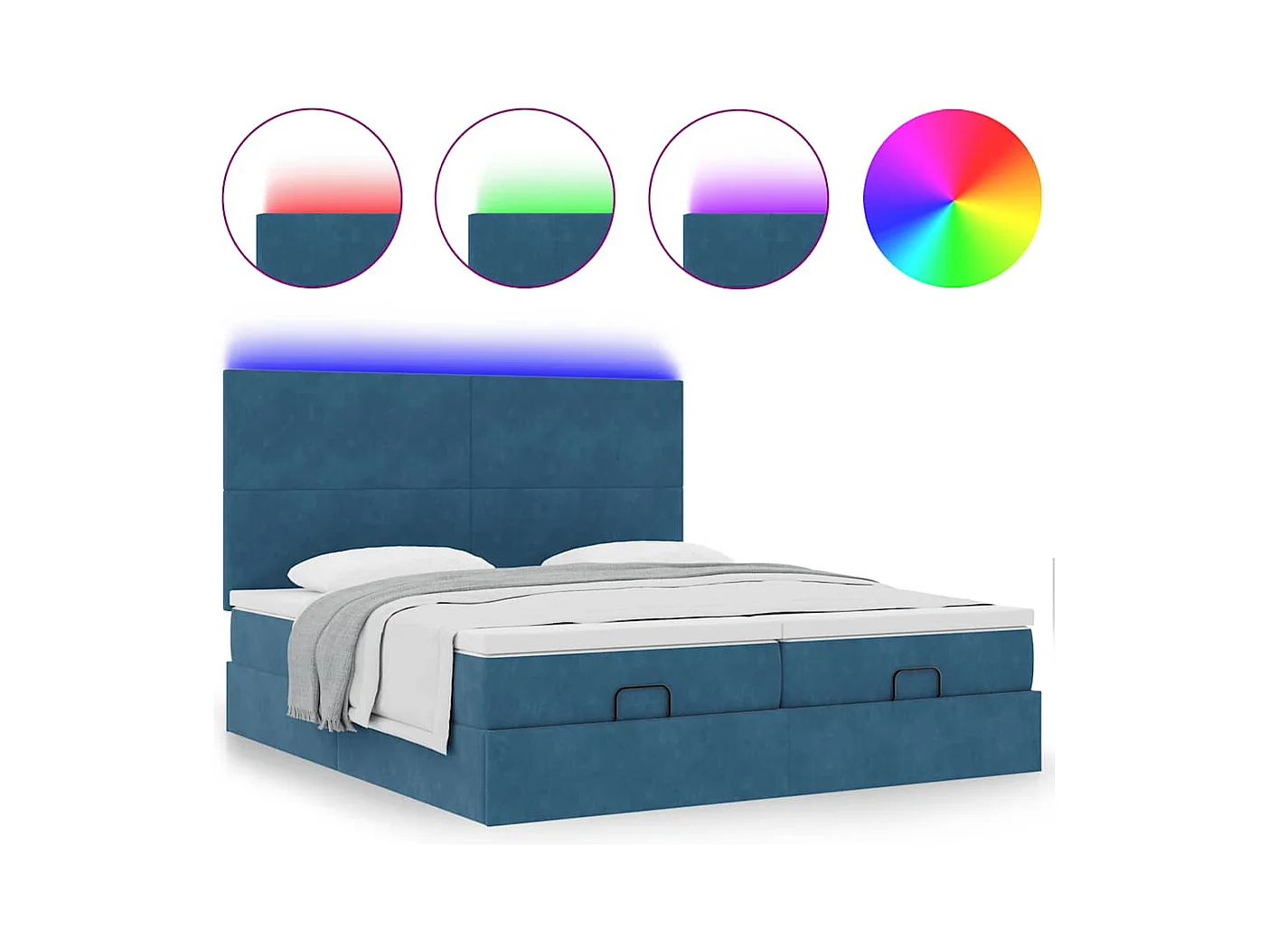 Estructura de cama otomana colchones terciopelo azul oscuro