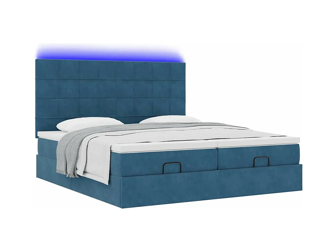 Estructura de cama otomana colchones terciopelo azul oscuro