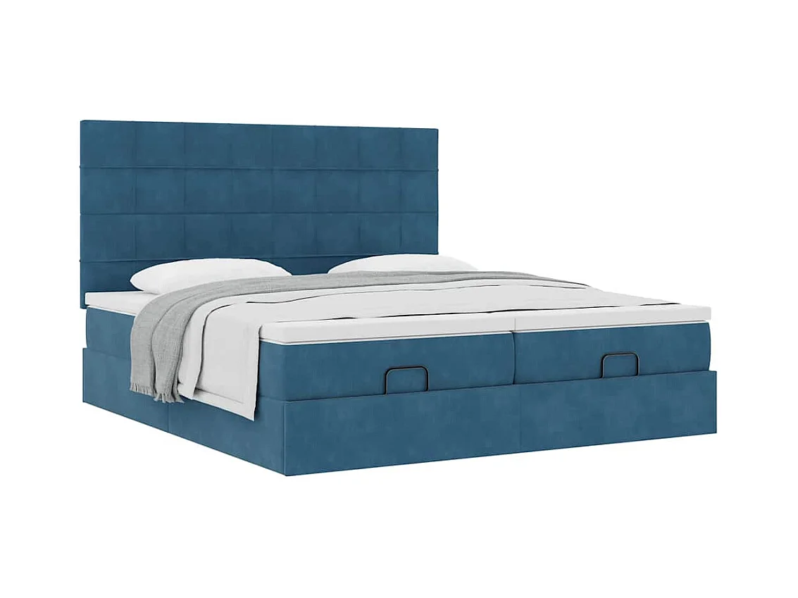 Estructura de cama otomana colchones terciopelo azul oscuro