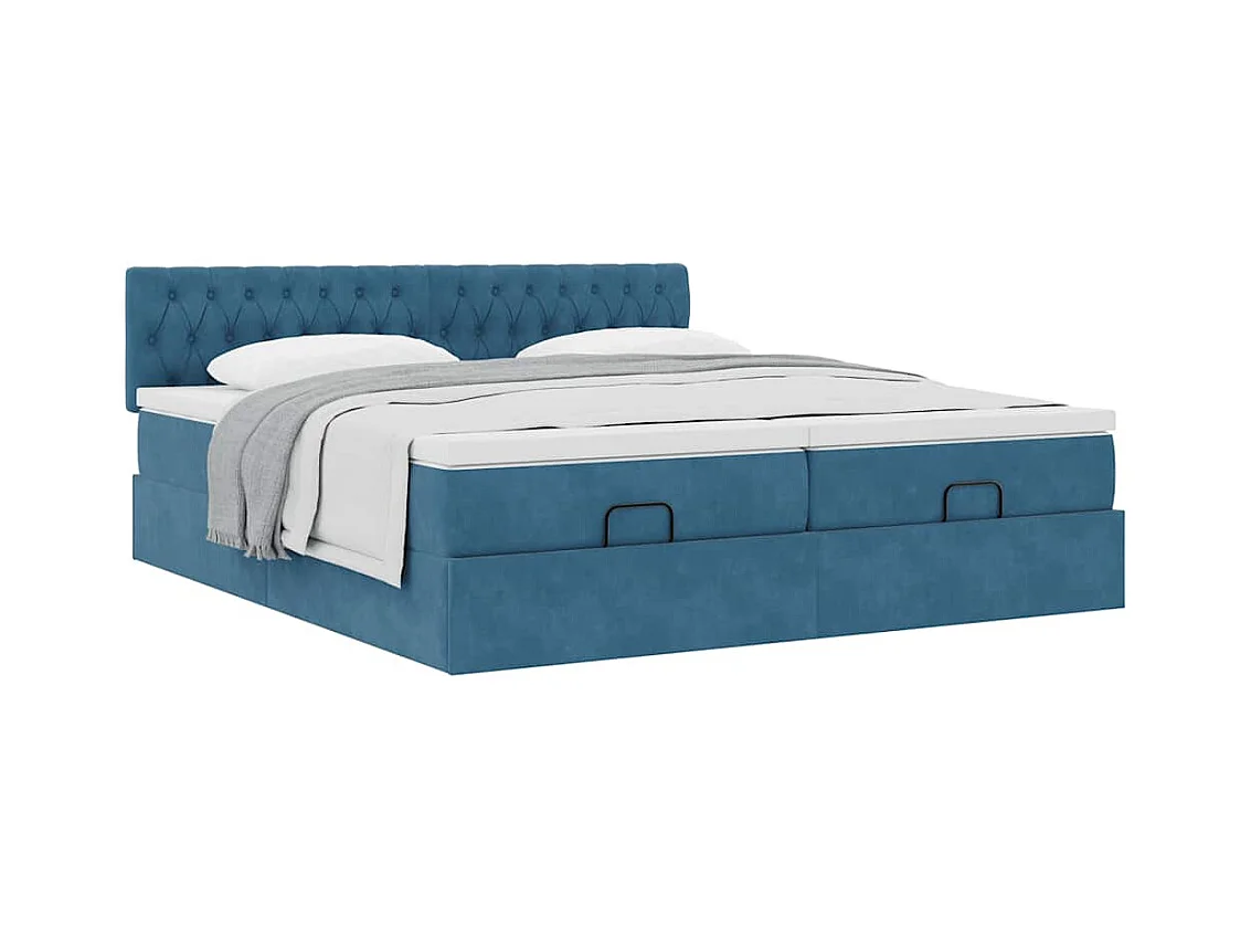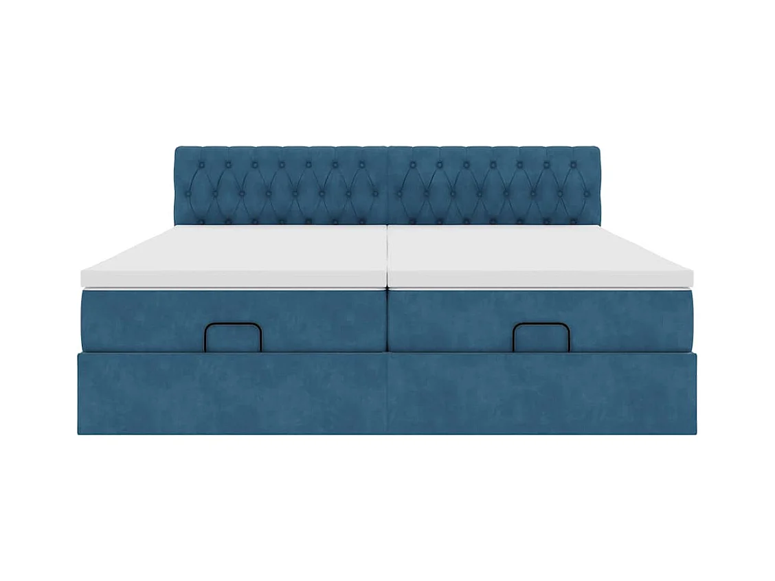 Estructura de cama otomana colchones terciopelo azul oscuro