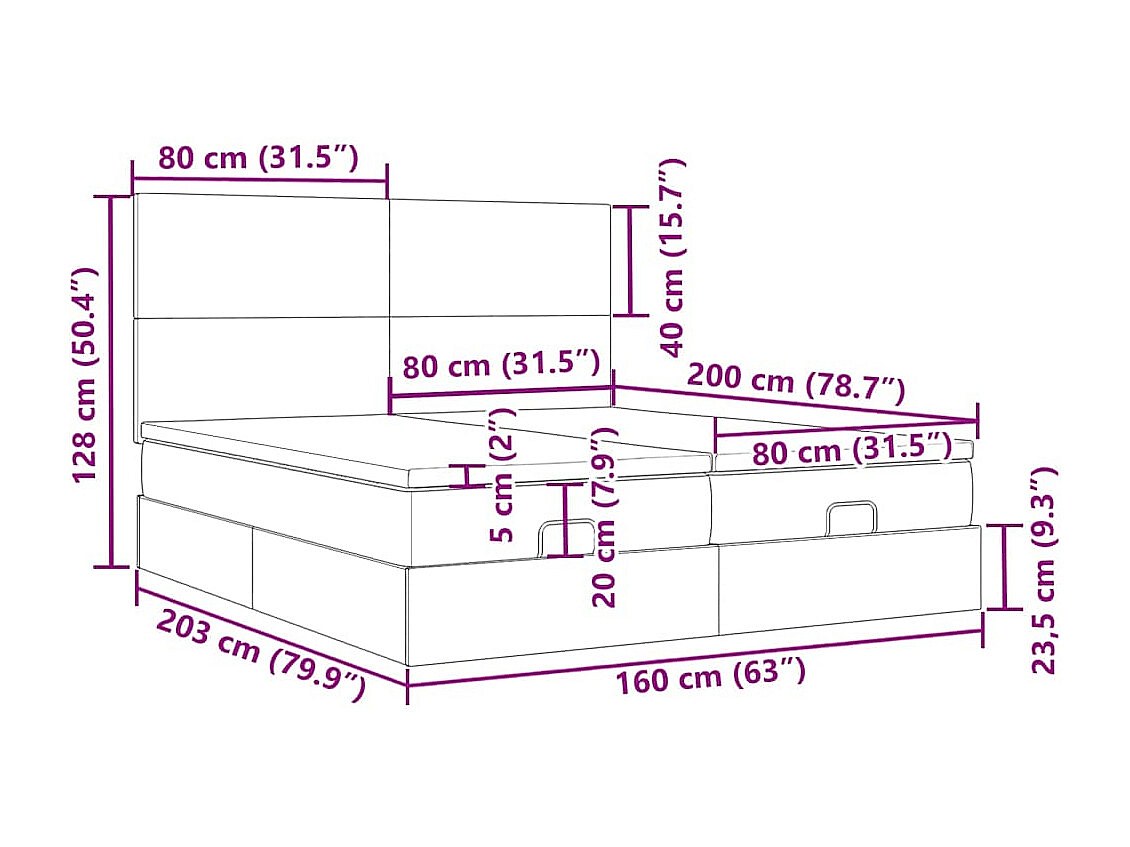 Estructura de cama otomana colchones terciopelo negra 160x200cm