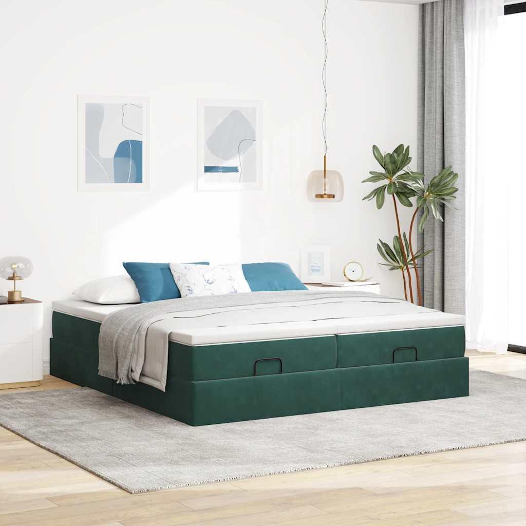 Estructura de cama otomana colchones terciopelo verde oscuro
