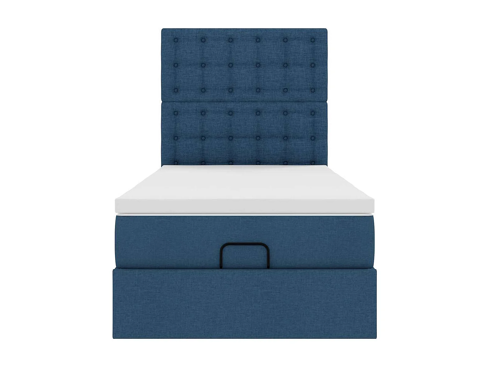 Estructura de cama otomana con colchón tela azul 100x200cm