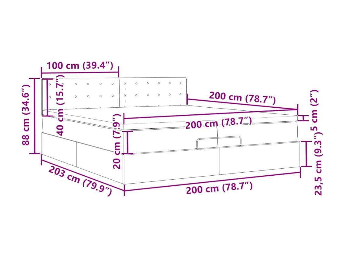 Estructura de cama otomana con colchones tela topo 200x200cm