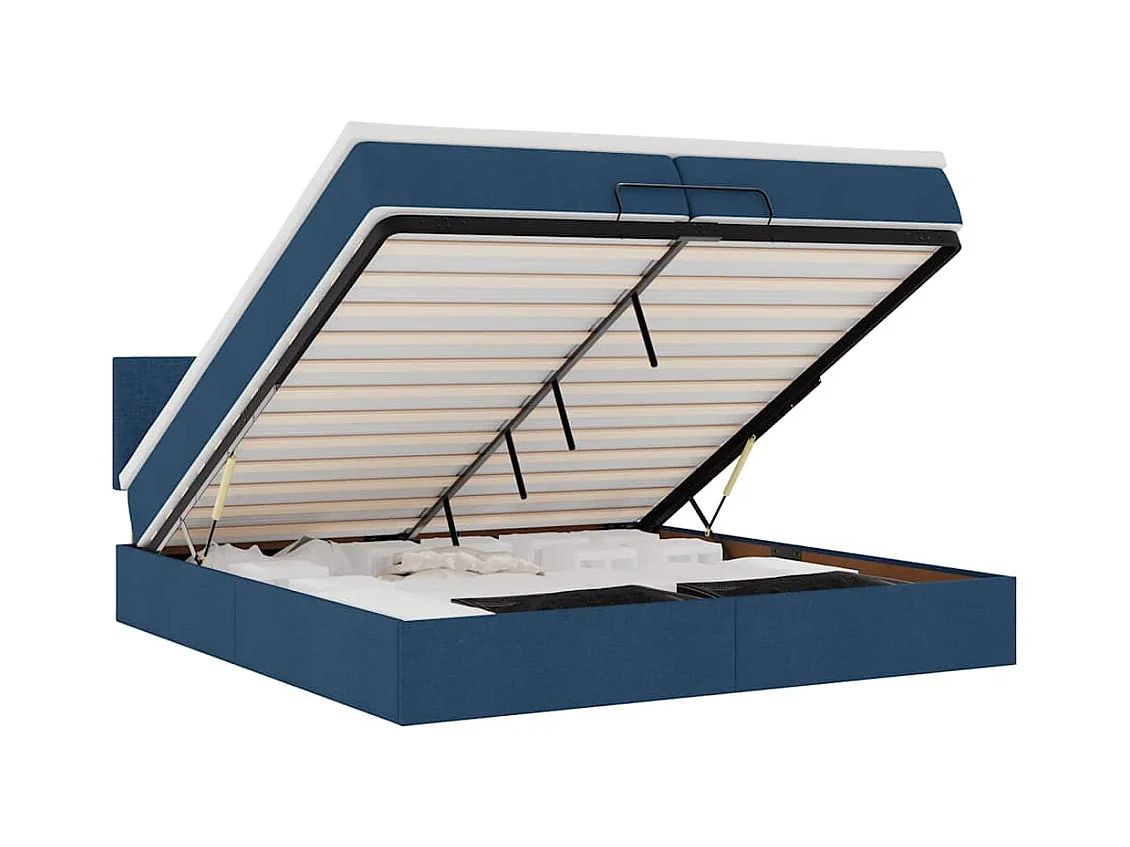 Estructura de cama otomana con colchón tela azul 200x200 cm