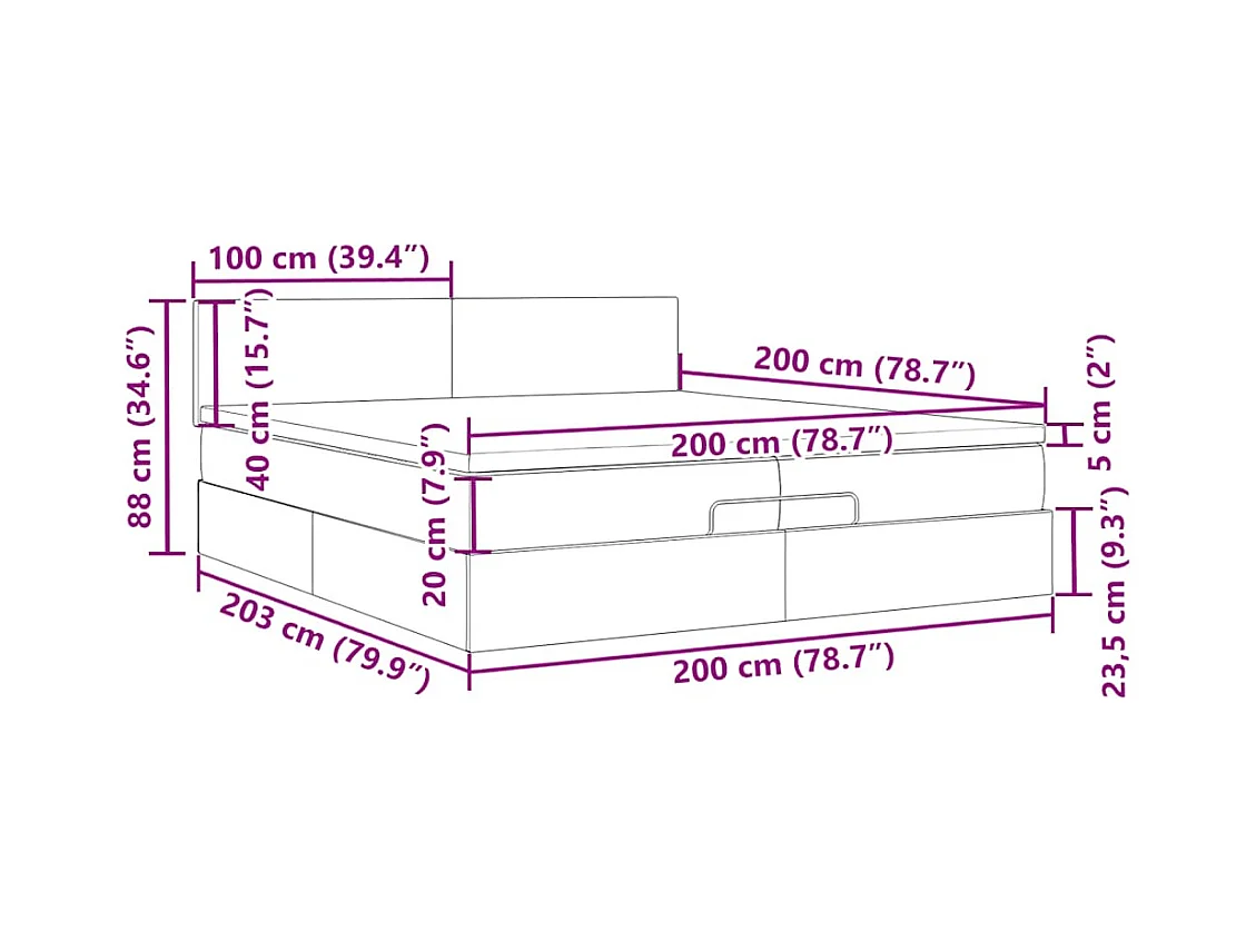 Estructura de cama otomana con colchones tela topo 200x200cm