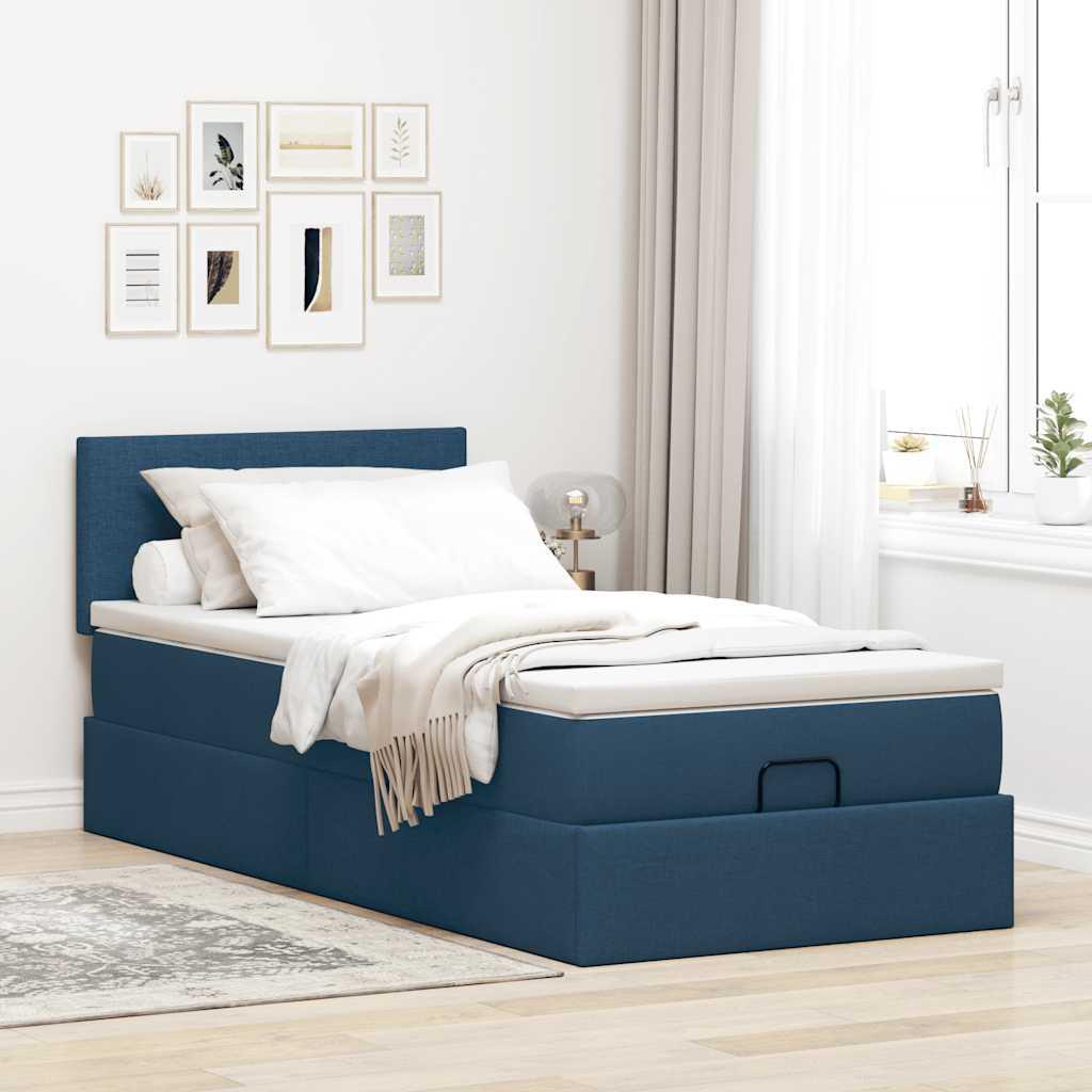 Estructura de cama otomana con colchón tela azul 90x190 cm