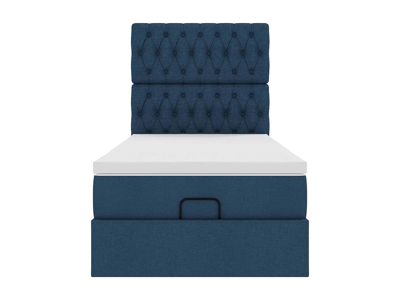 Estructura de cama otomana con colchón tela azul 90x190 cm