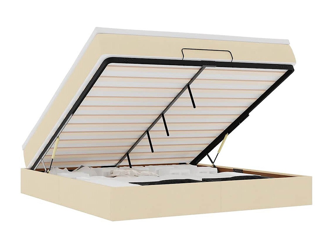 Estructura de cama otomana con colchón tela crema 160x200cm