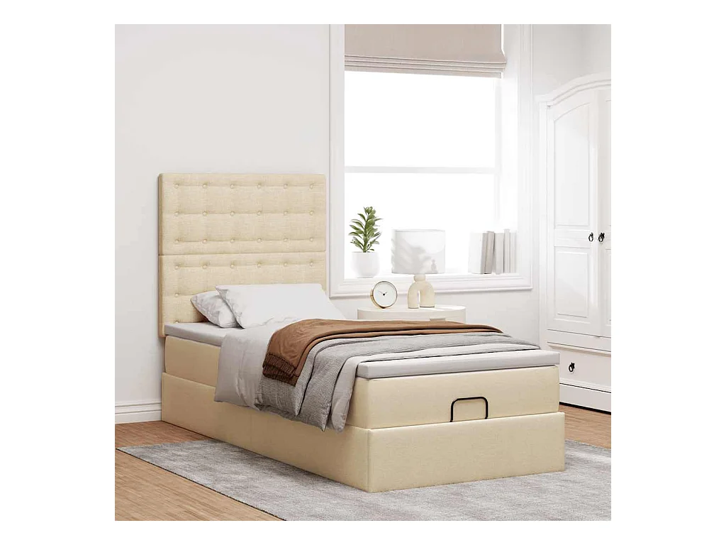 Estructura de cama otomana con colchón tela crema 80x200cm