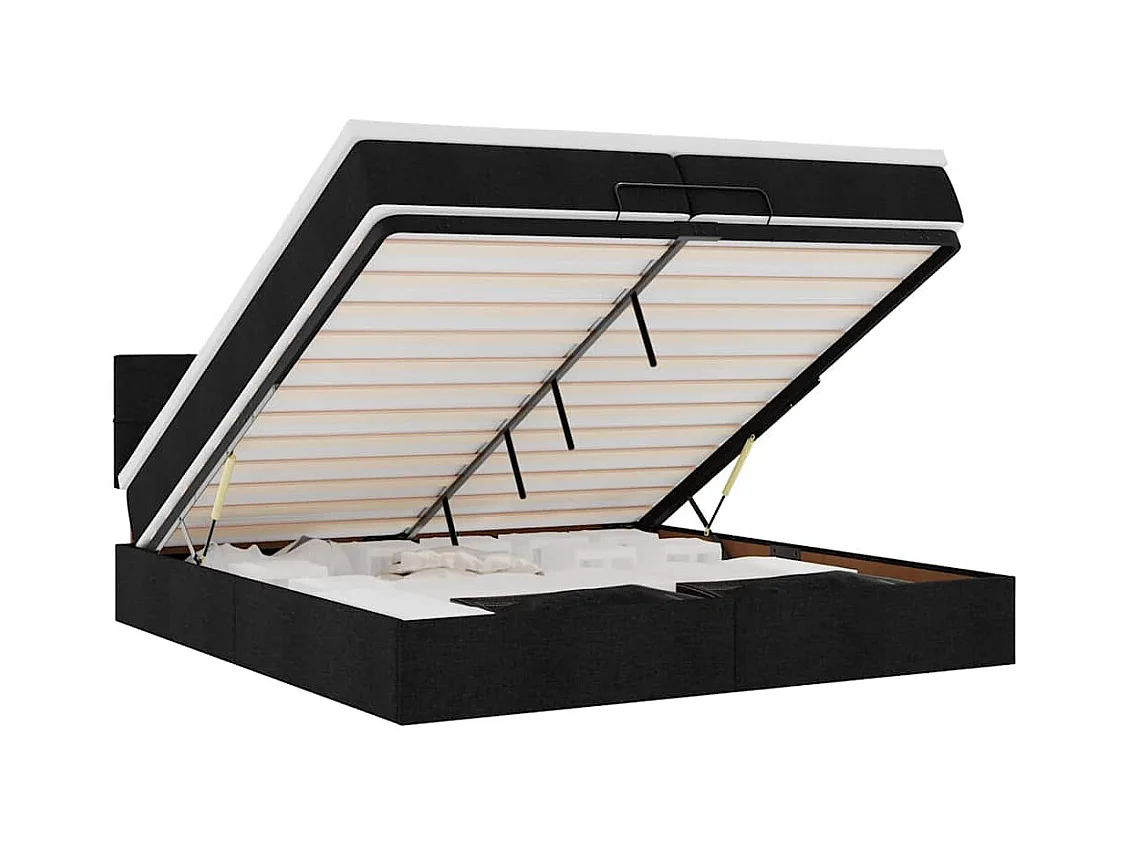 Estructura de cama otomana con colchón tela negra 200x200 cm