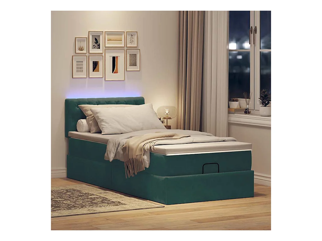 Estructura cama otomana colchones terciopelo verde oscuro