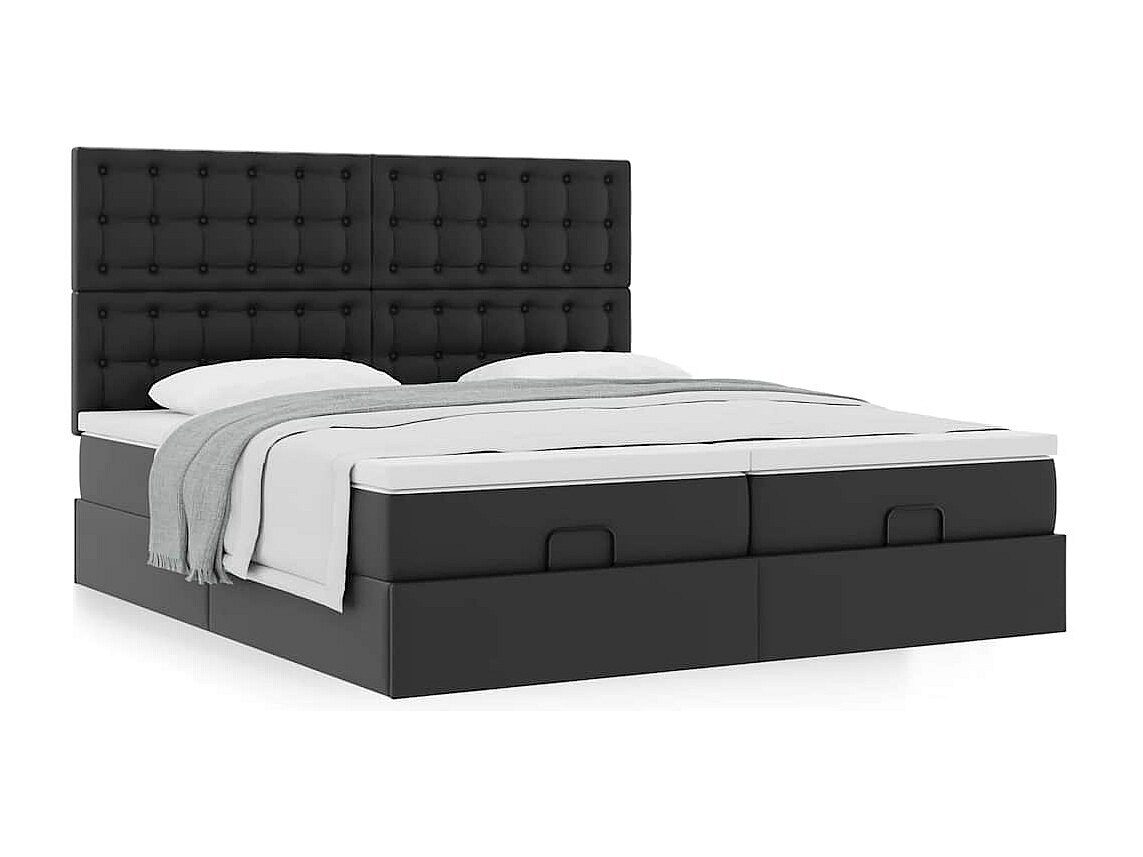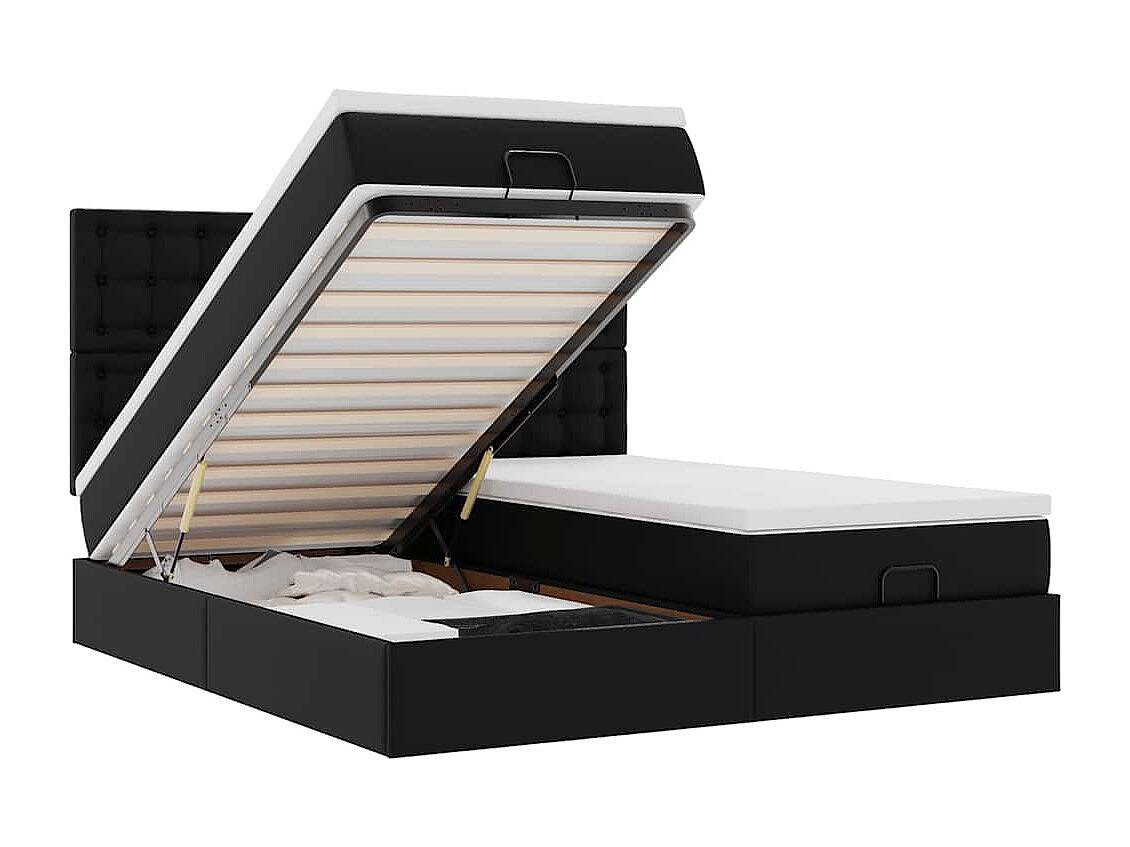 Estructura cama otomana colchón cuero sintético negro 160x200cm