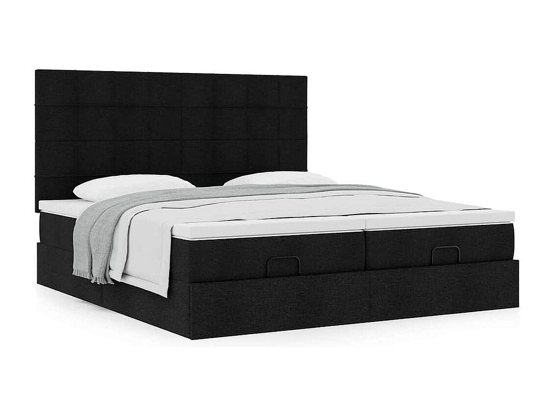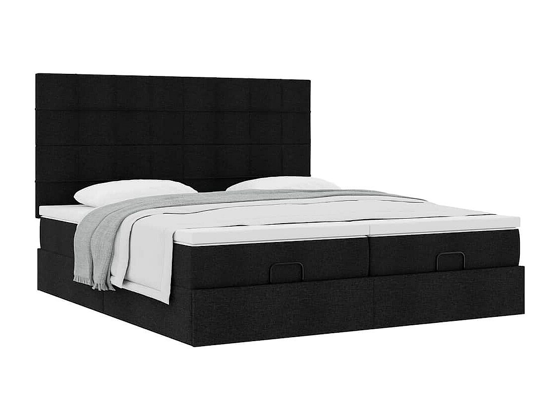 Estructura de cama otomana con colchones tela negra 160x200 cm