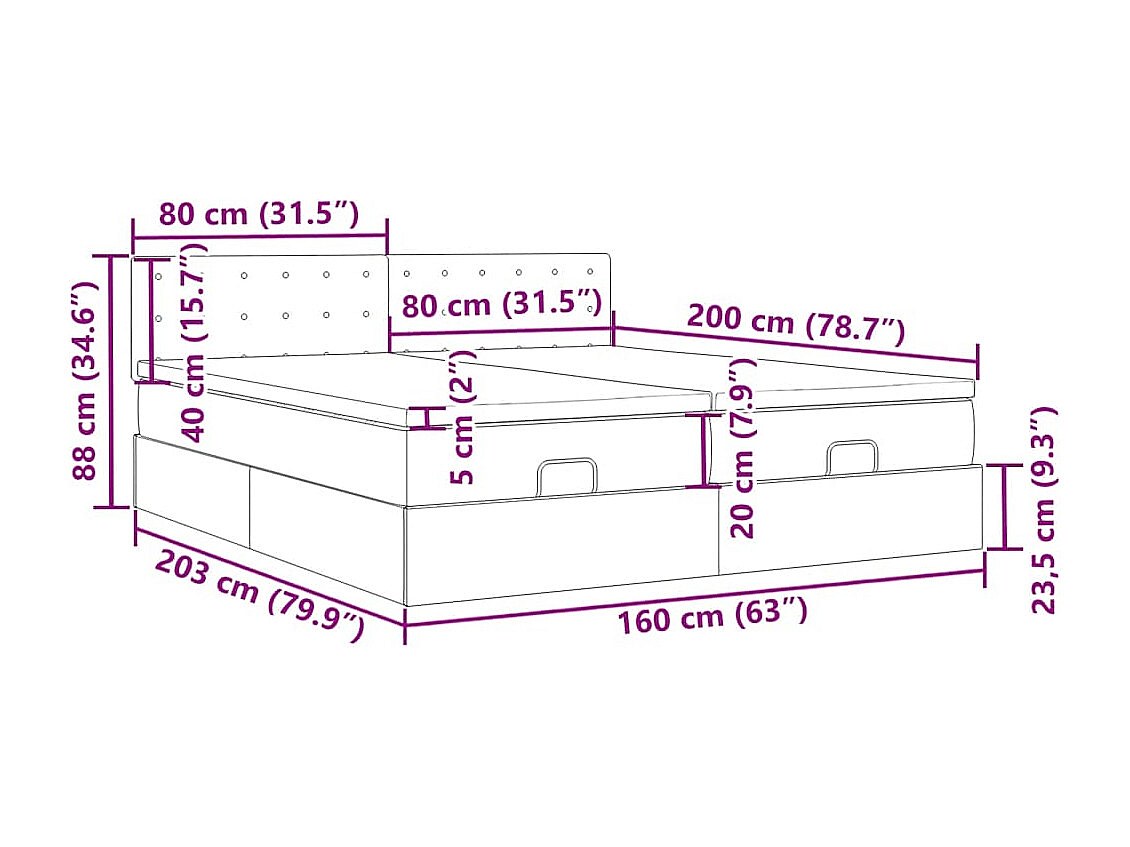 Estructura de cama otomana colchones terciopelo negra 160x200cm
