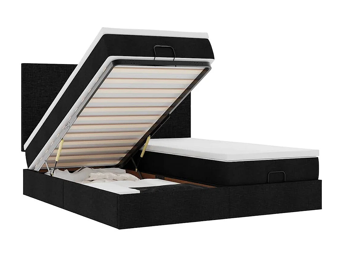 Estructura de cama otomana con colchones tela negra 180x200cm