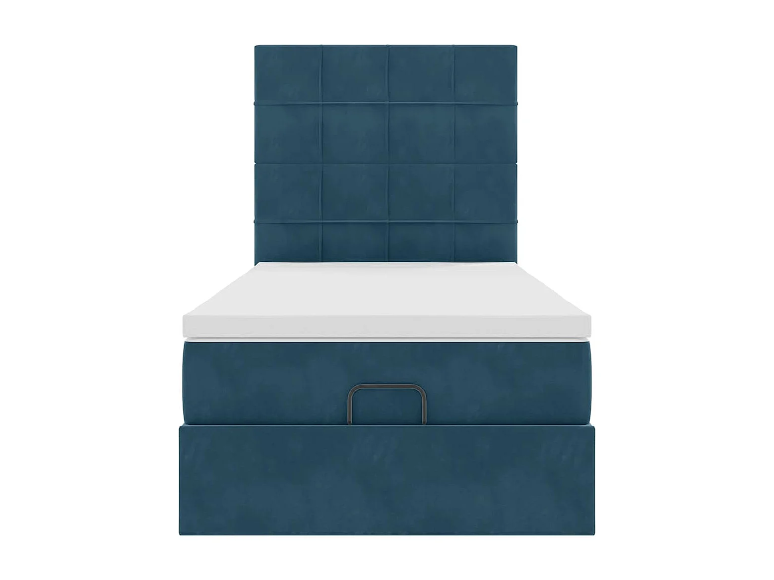 Estructura de cama otomana con colchones terciopelo azul oscuro