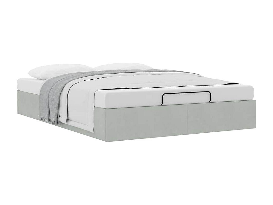 Estructura cama otomana colchón terciopelo gris claro 140x190cm
