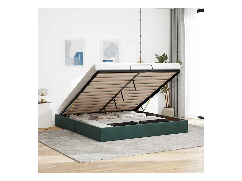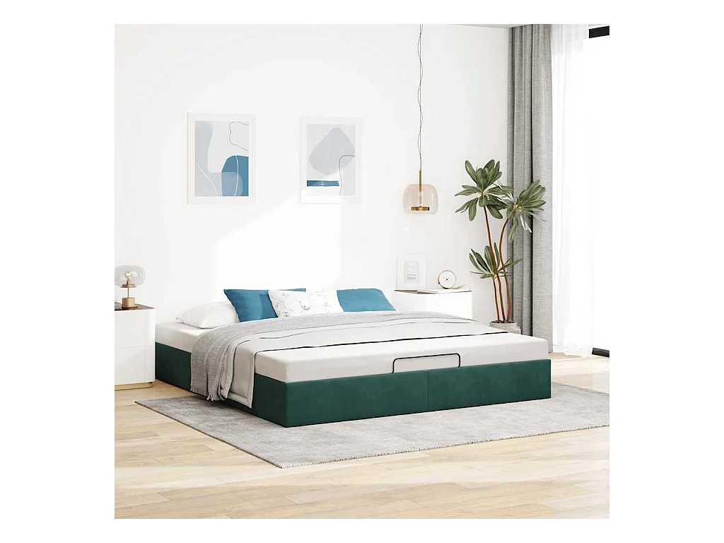 Estructura de cama otomana sin colchón verde oscuro 200x200 cm