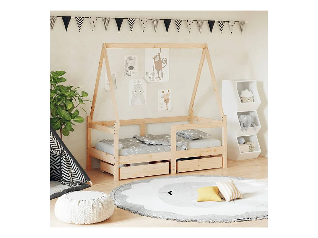 Estructura de cama para niños con cajones madera pino 70x140 cm