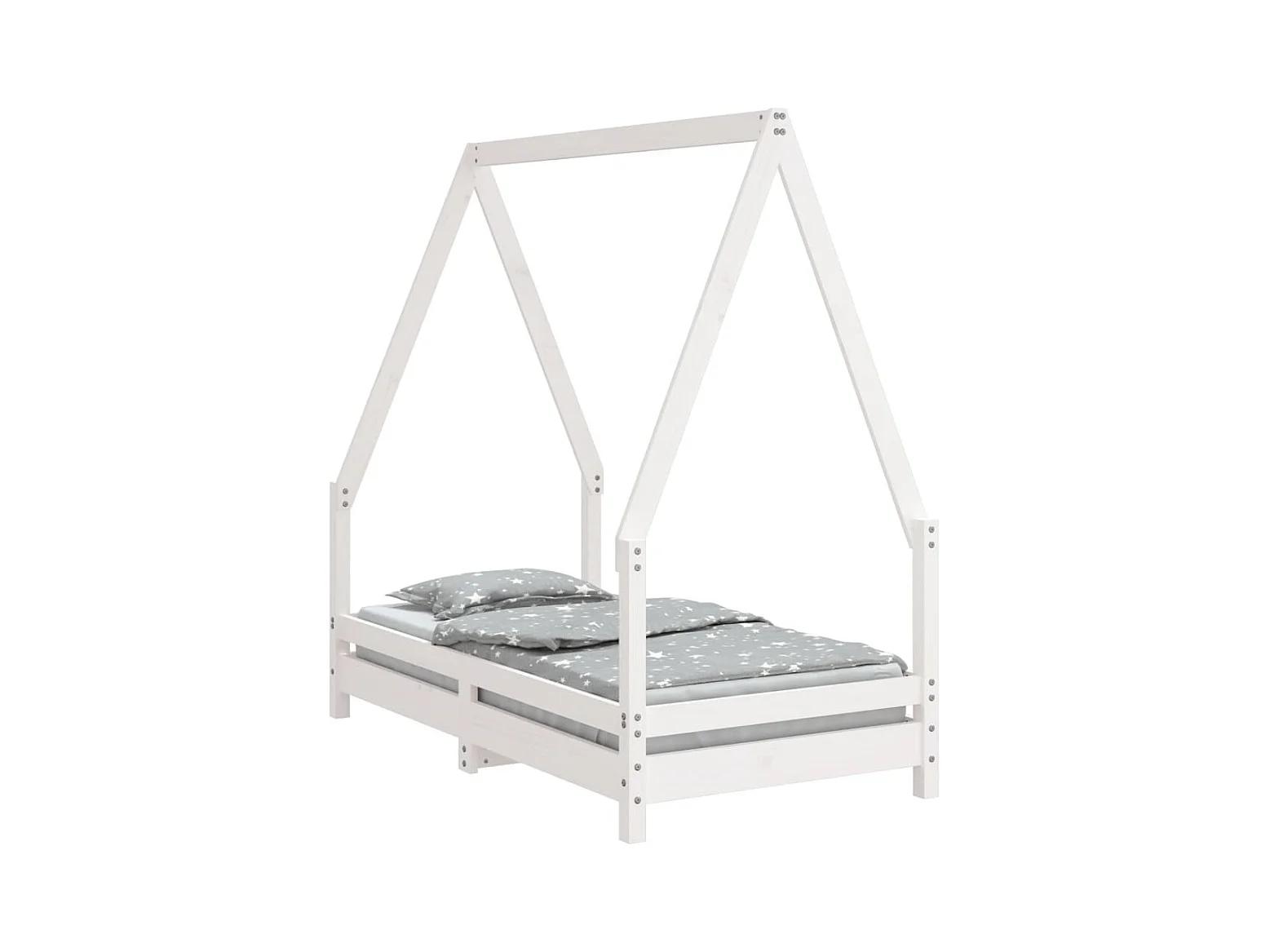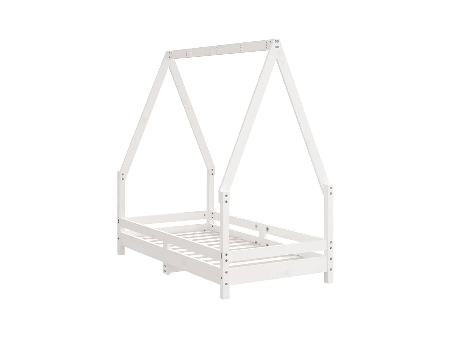 Estructura de cama infantil blanca de madera maciza de pino 70x140 cm