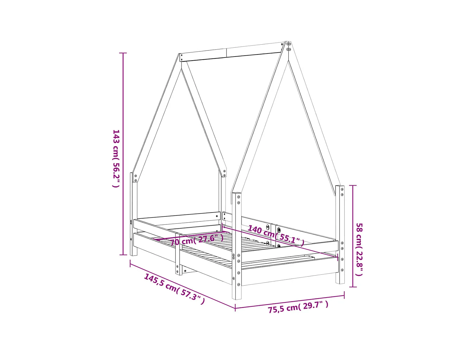 Estructura de cama para niños madera de pino blanco 70x140 cm