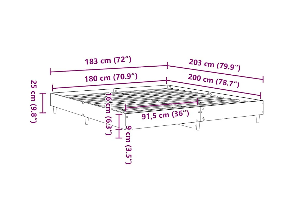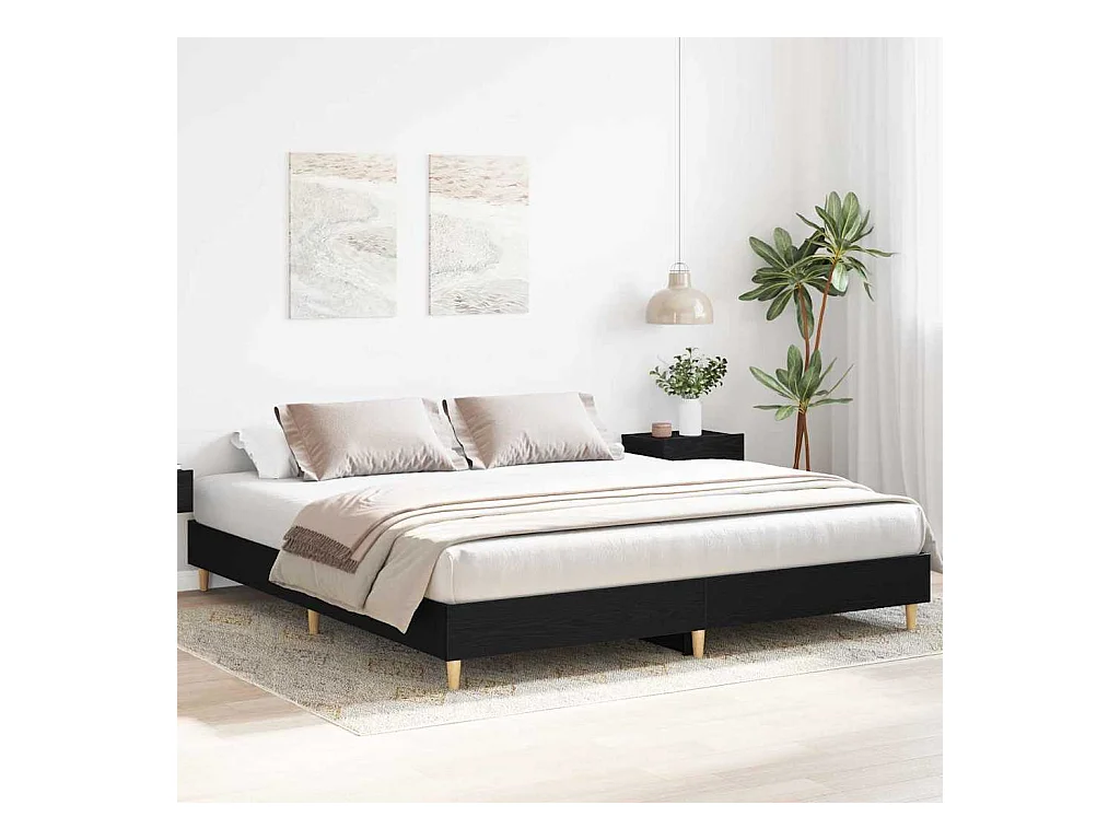 Estructura de cama madera de ingeniería y metal negro 180x200cm