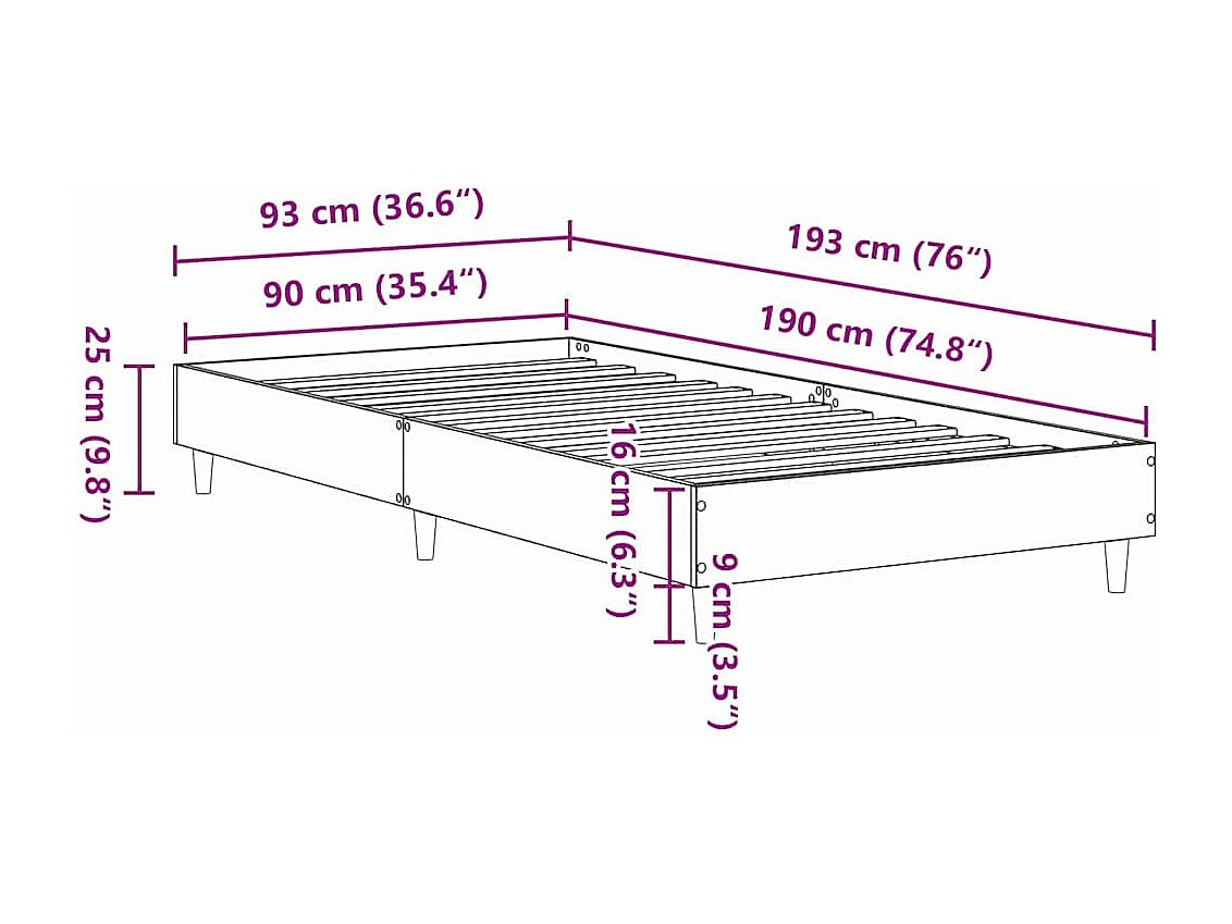 Estructura de cama Roble negro 90 x 190 cm Madera contrachapada