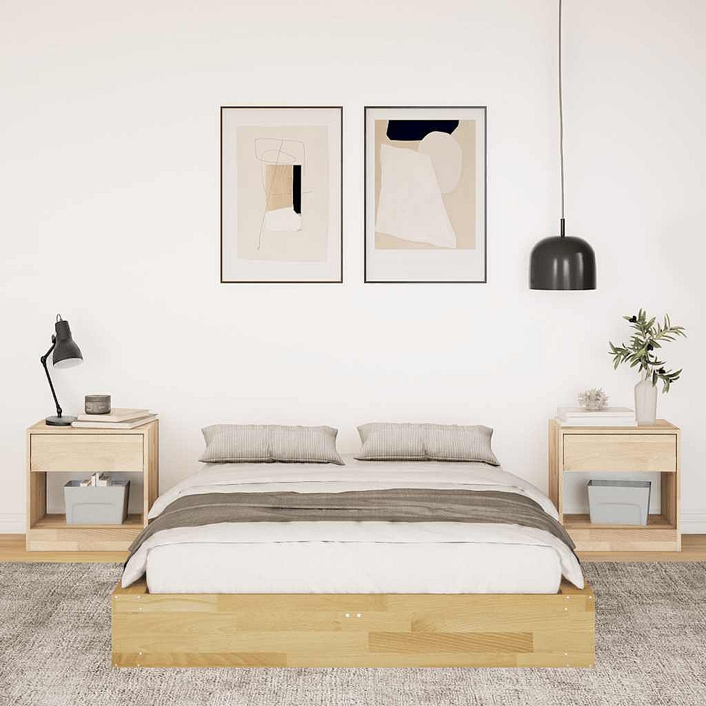 Estructura de cama sin colchón 120x190 cm madera maciza de roble