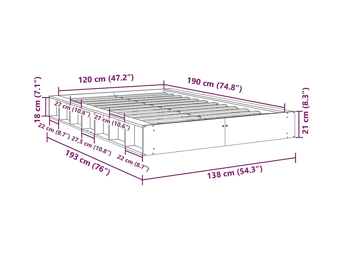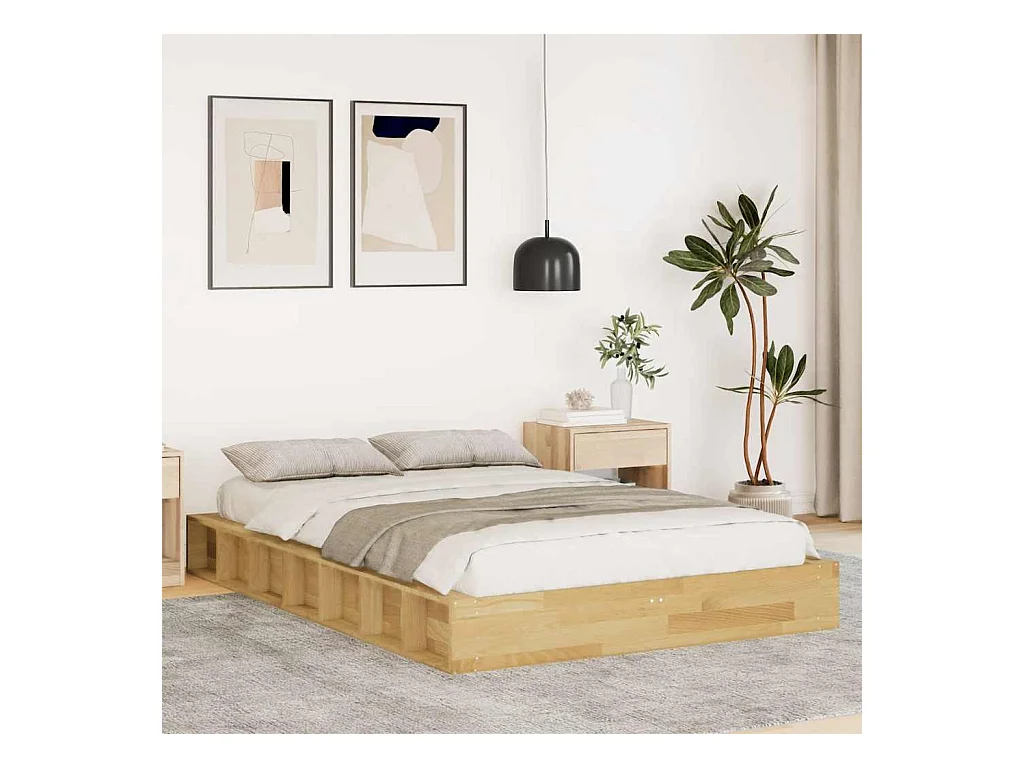 Estructura de cama sin colchón 120x190 cm madera maciza roble