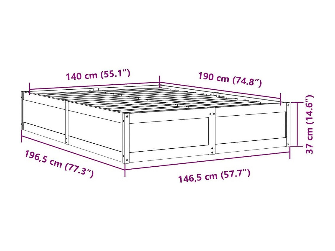 Estructura de cama sin colchón 140x190 cm madera maciza de pino