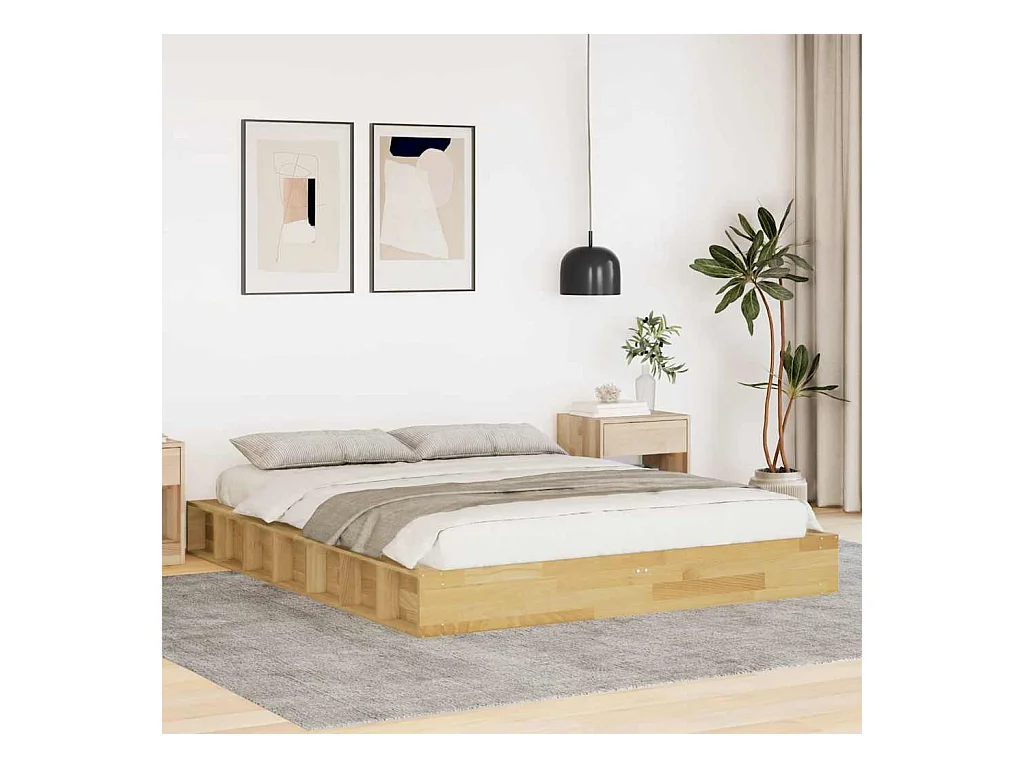 Estructura de cama sin colchón 150x200 cm madera maciza roble