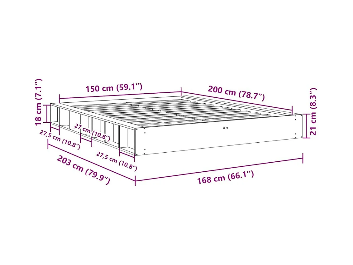Estructura de cama sin colchón madera de pino blanco 150x200 cm