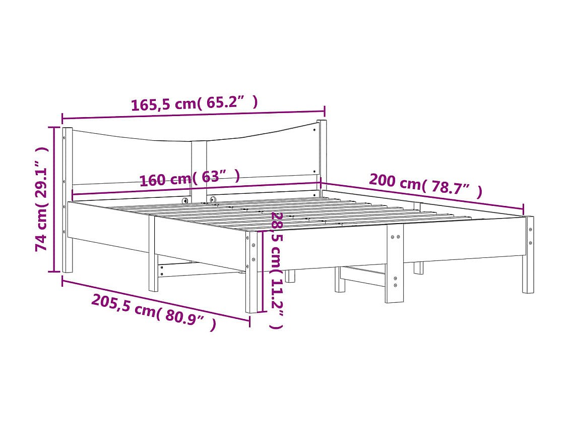 Estructura de cama sin colchón 160x200 cm madera maciza de pino