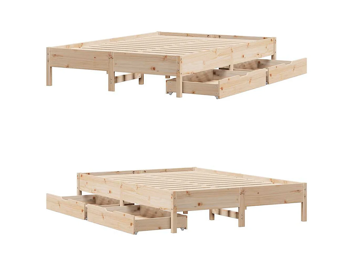 Estructura de cama sin colchón de madera maciza de pino 160x200 cm