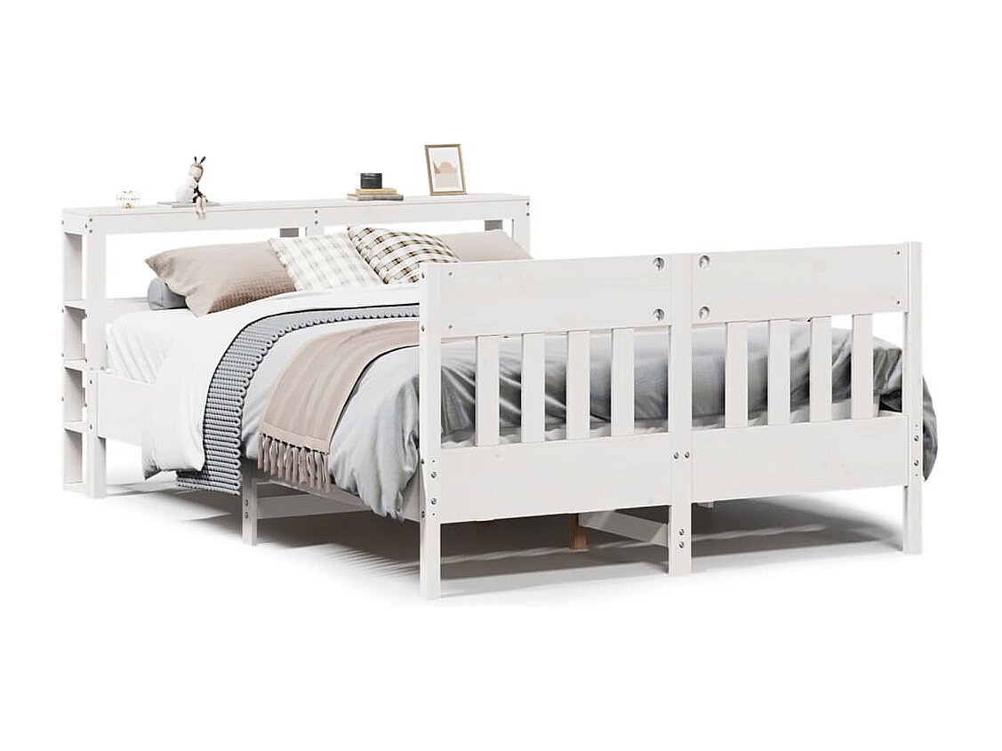 Cama librería blanca sin colchón 120x200 cm madera maciza de pino