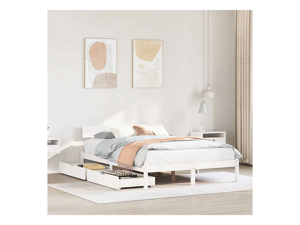 Estructura de cama con cajones blanca 120x200 cm madera maciza de pino