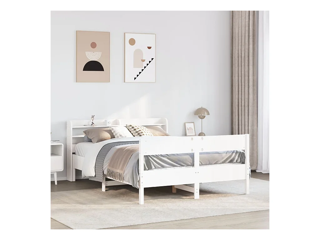 Cama librería blanca sin colchón 135x190 cm madera maciza de pino