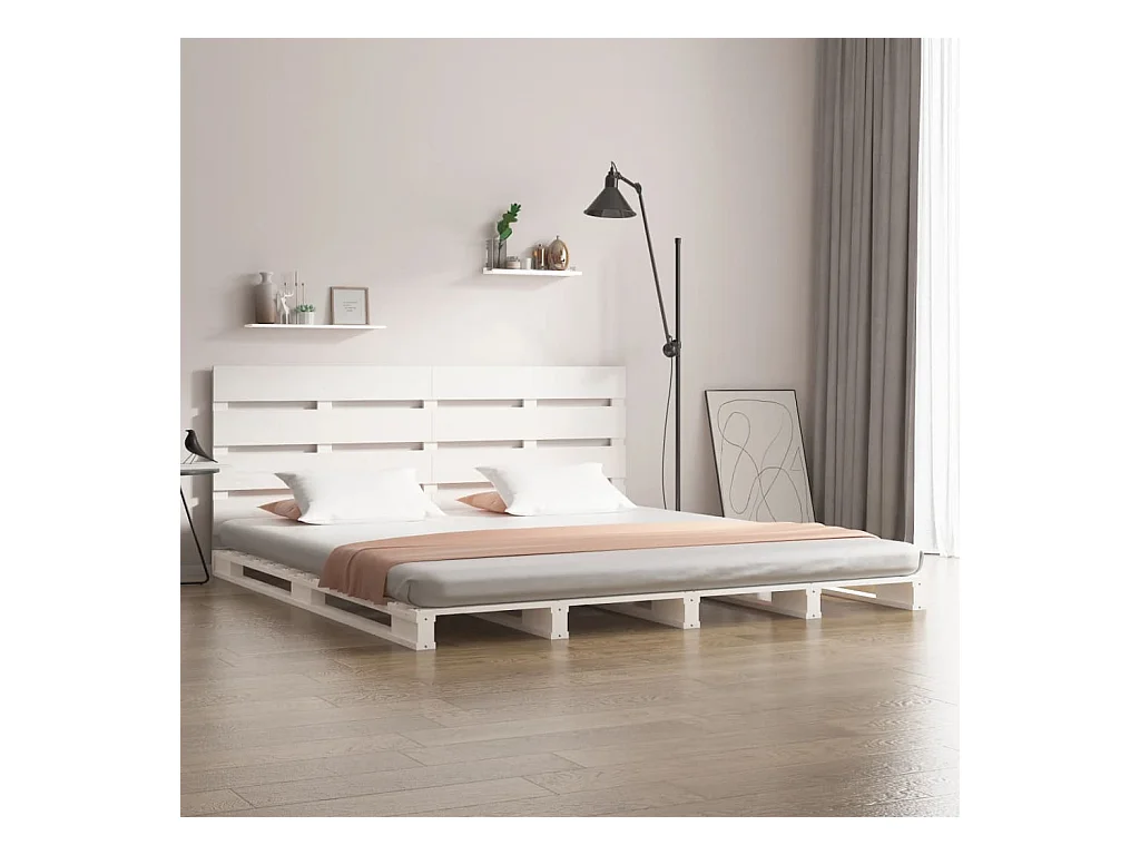 Estructura de cama sin colchón blanca 140x190 cm madera maciza de pino
