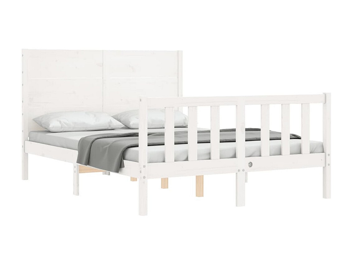 Estructura de cama sin colchón de madera maciza blanca 140x190 cm