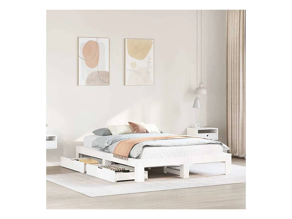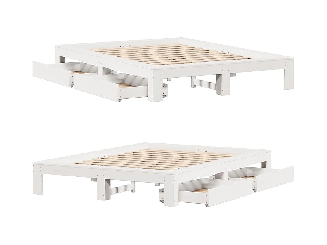 Estructura de cama con cajones sin colchón blanca 150x200 cm