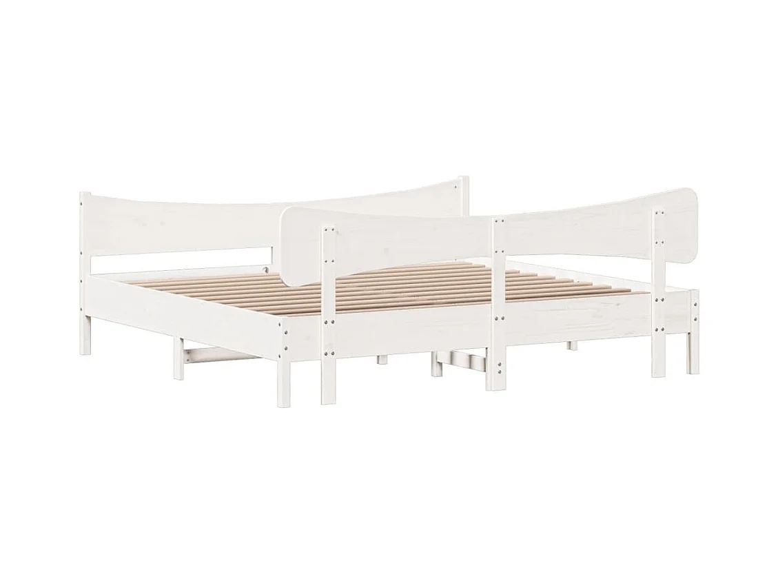 Estructura de cama blanca de 200 x 200 cm de madera maciza de pino
